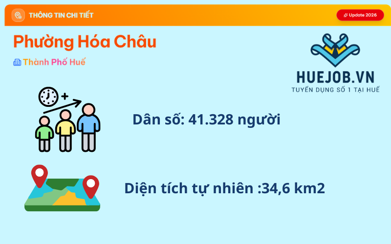 Phường Hóa Châu có diện tích tự nhiên là 34,60 km2