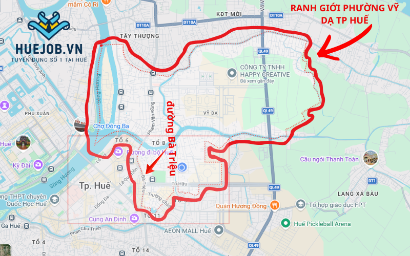 Theo cập nhật mới nhất từ ngày 1/7/2025 (Nghị quyết số 1675/NQ-UBTVQH15), toàn bộ tuyến đường Bà Triệu hiện nay nằm trong địa phận phường Vỹ Dạ, thành phố Huế. Đây là thay đổi quan trọng trong việc sắp xếp đơn vị hành chính mà du khách và người dân cần lưu ý.